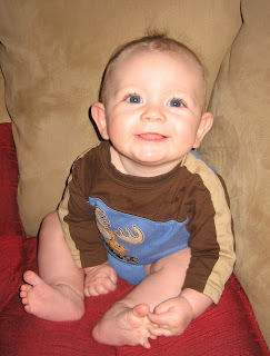 Wow! A half a year has gone by since Ace entered this world!? I know that everytime I make one of these posts I say it's hard to imagine - but seriously a half a year has gone by?! Wowie! What a six months it has been... but just this sixth month has been full of so many new things!!Monday, February 23, 2009